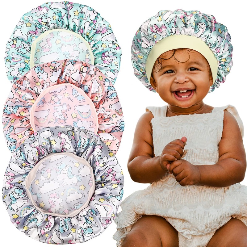 - CUTE UNICORN PRINTS: 3 color of the fun unicorn on the Satin Bonnets very cute.Pink, blue, grey. Maintain moisture, No Color Shading or Fading.