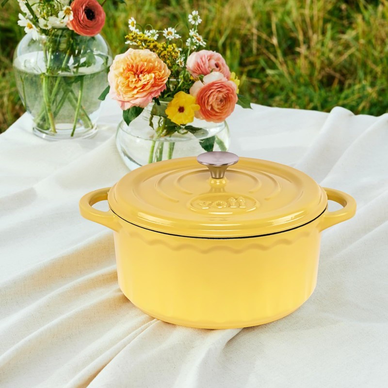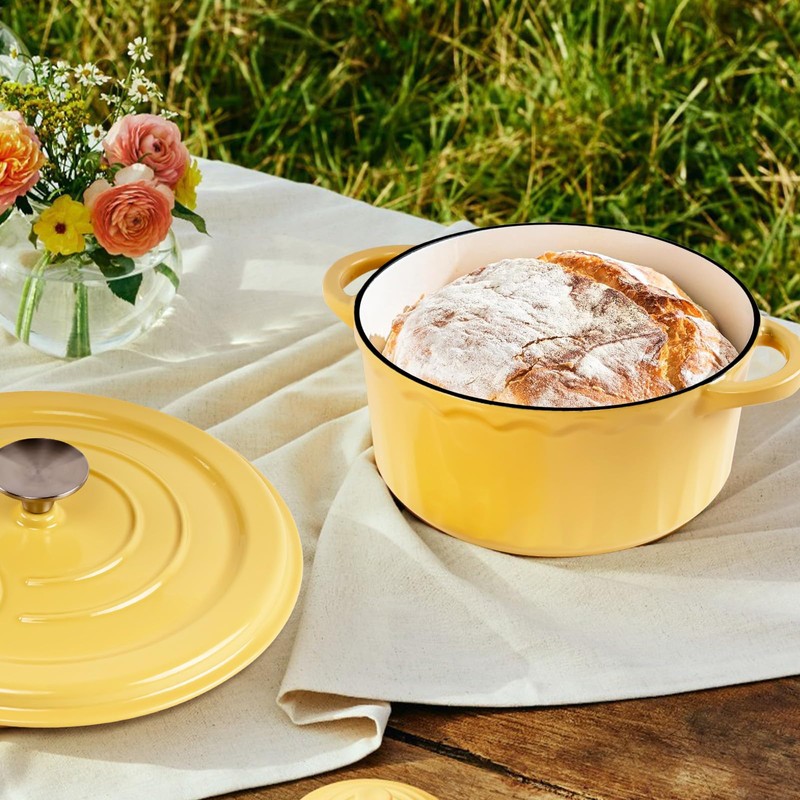 AILIBOO 6 QT Enameled Dutch Oven Pot with Lid-Dual Handles-Oven Safe up to 500° F or on Stovetop Use to Marinate, Cook, Bake, Refrigerate and Serve-Yellow Dutch Oven