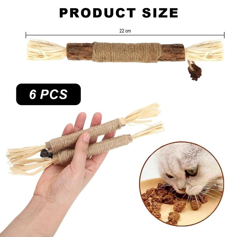 • Set of 6 natural and safe catnip sticks for dental care and promote your cat's health