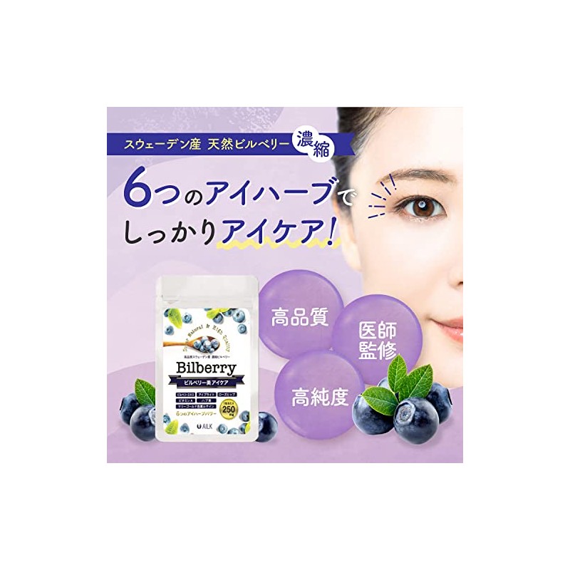 ビルベリー 目に良いサプリメント ビルベリー&ルテイン サプリ AILK(アイルク)ビルベリー美 アイケアサプリメンント 天然ビルベリー 天然ルテイン 1粒当たり250㎎配合 高濃度スウェーデン産ビルベリー 1か月分120粒