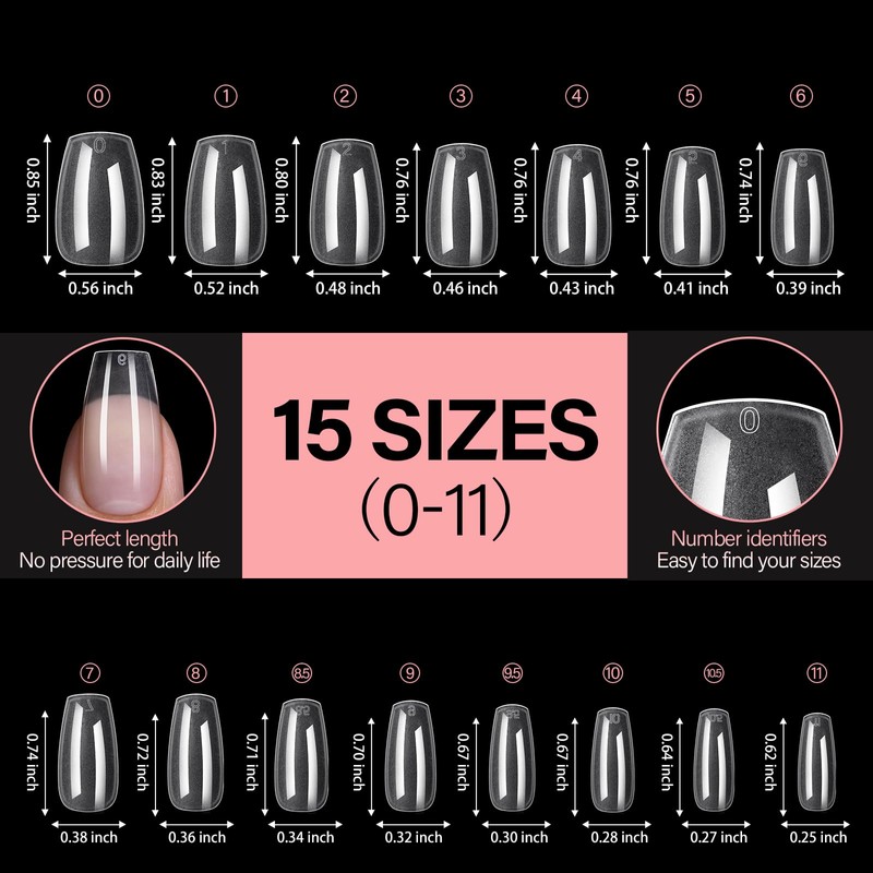 - 【Multiple Sizes Available, Fits 90% Nail Sizes】: Each box contains 240 soft gel nail tips in 15 different sizes for easy matching to your natural nails. Whether your nails are short, wide, or slender, you’ll find a precise fit, reducing trimming steps—perfect for beginners.