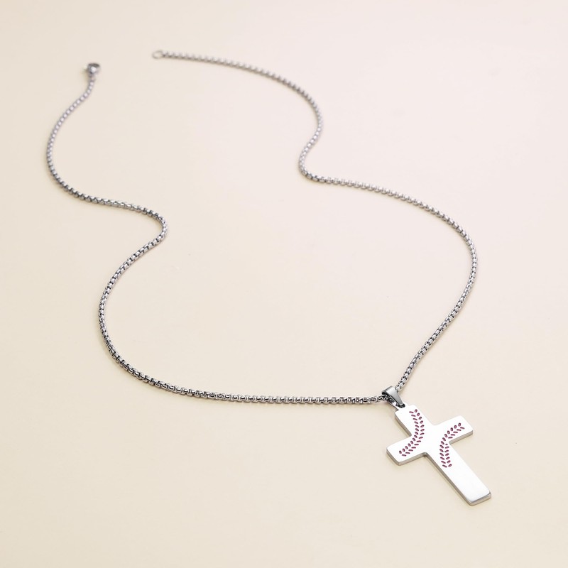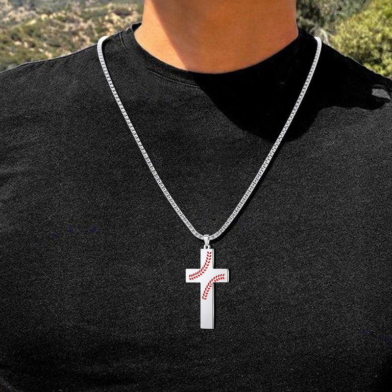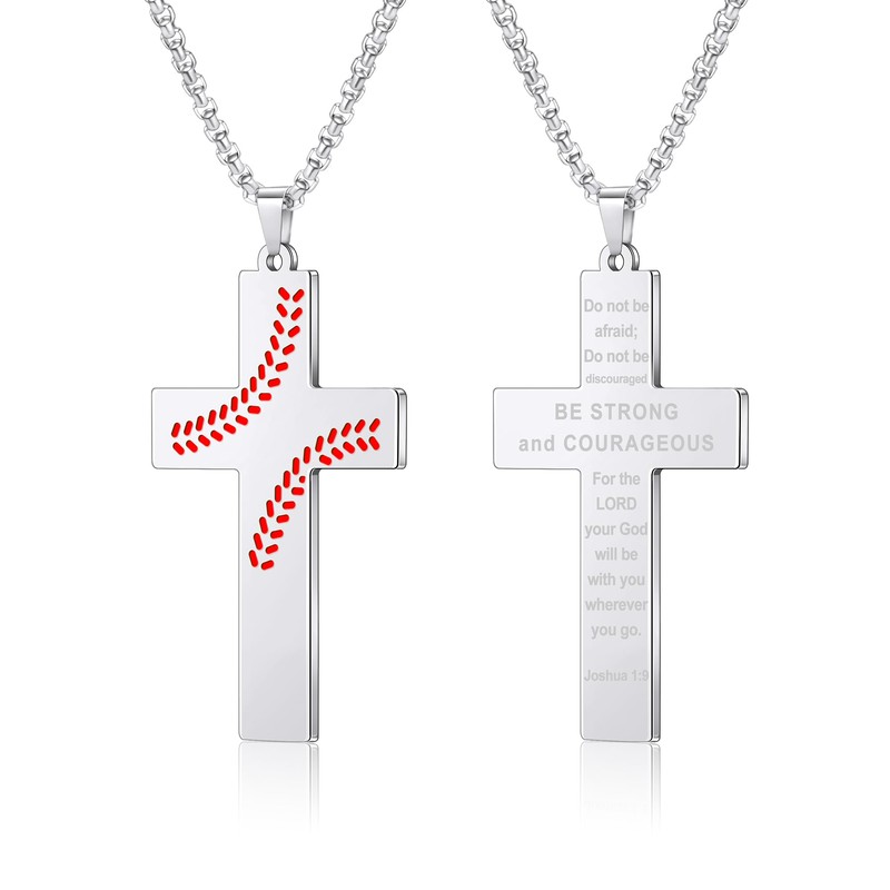 Enhance your style with this stylish Baseball Bible Verse Cross Necklace, designed for men. This Baseball Bible Verse Cross necklace is not only a Athlete statement but also a powerful symbol of faith.