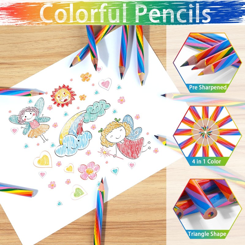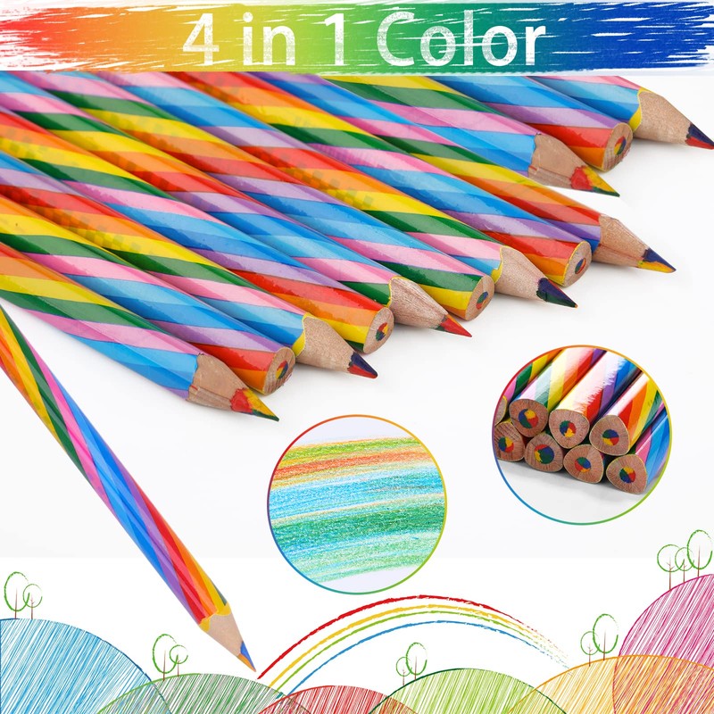 - 【4 REGENBOGENFARBE DESIGN】Der Buntstifte hat eine farbenfrohe Streifenoptik. Farben lebendigen, Auffallen. Die Kern innen Bleistift besteht aus vier Farben: Gelb, Blau, Rot und Grün. Beim Malen kann es bunte Farben zeigen. Machen Sie das Zeichnen Ihres Kindes zum Vergnügen.