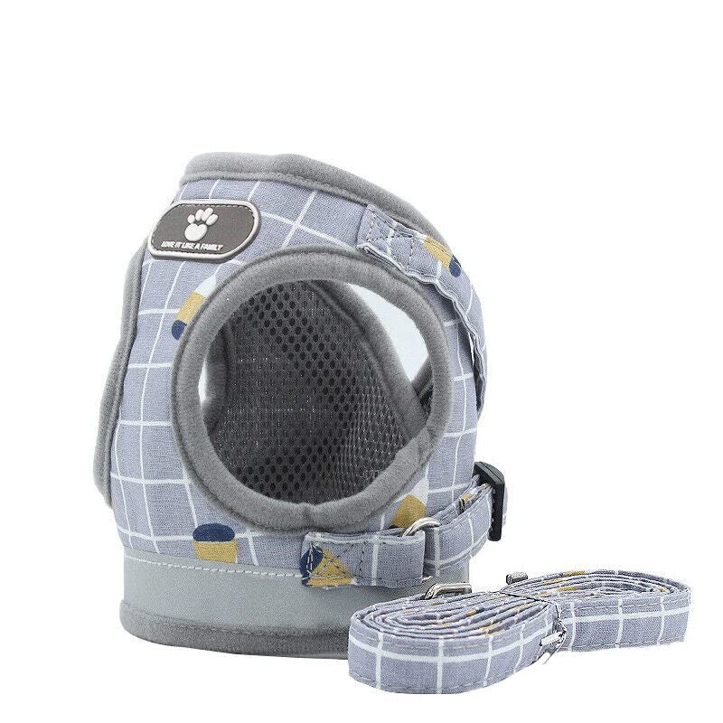 This adjustable pet harness and leash set is specially designed for small dogs and cats, offering maximum comfort and safety during walks. Made from soft and breathable sandwich mesh fabric, it ensures excellent air permeability, keeping your pet cool and comfortable. The reflective design enhances visibility at night, reducing the risk of accidents. The quick-release buckle and adjustable chest belt allow for a secure and customized fit, making it perfect for puppies, kittens, and small dog breeds.
