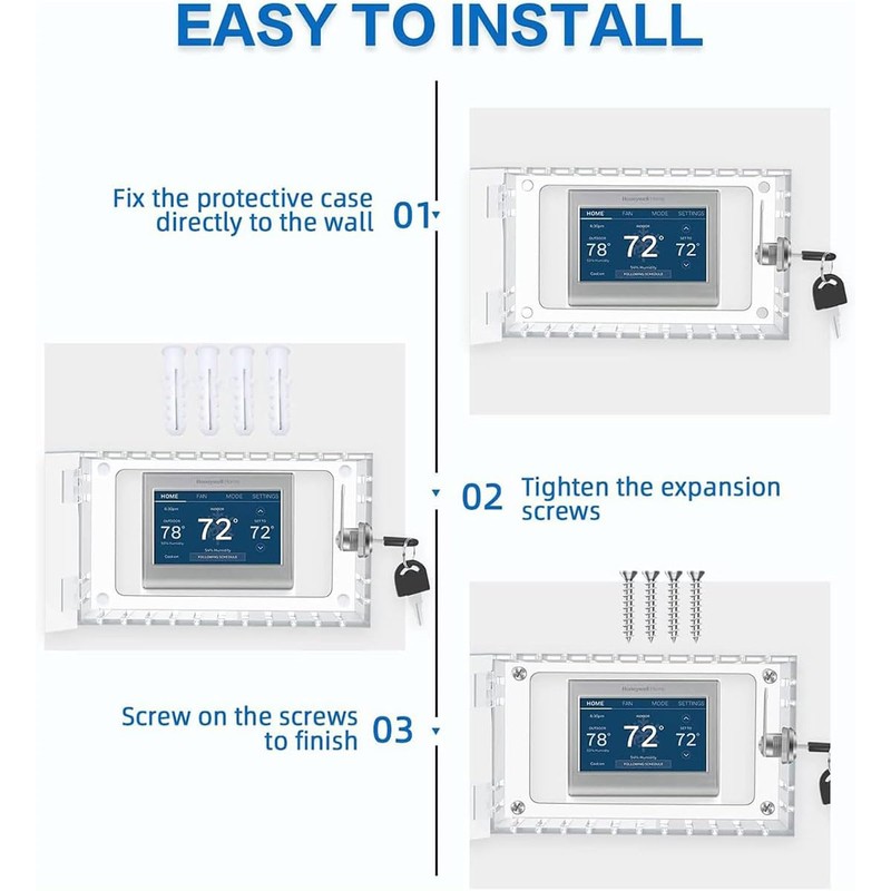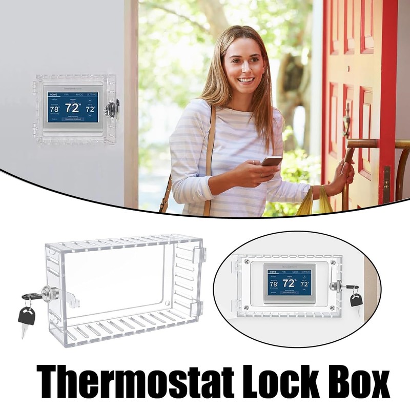 AIMALL Thermostat Lock Box with Key – Transparent Protective Cover for Thermostats, Acrylic Lockable Guard with Ventilation for Energy Efficiency