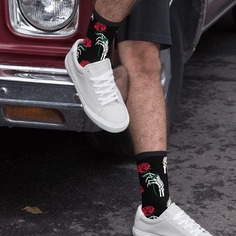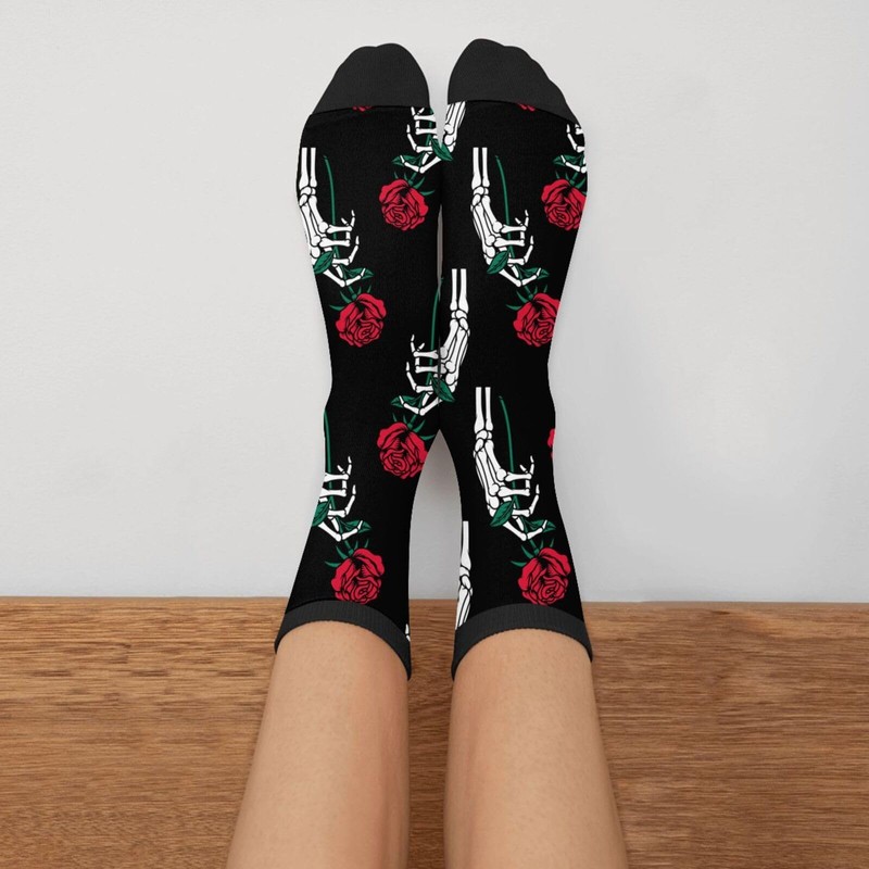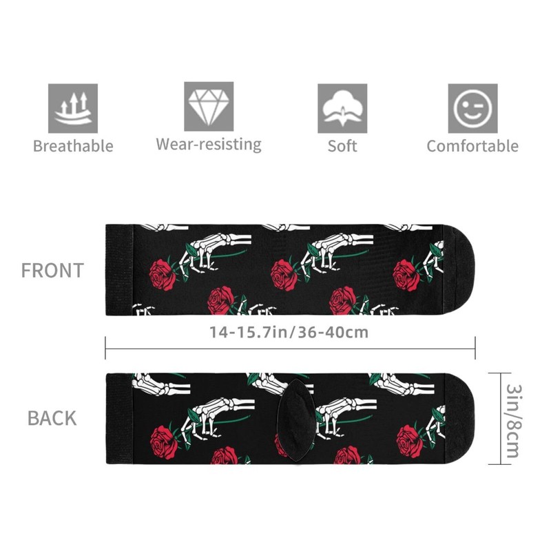 - Excellent Quality - Our Art Skeleton Hand Rose Pattern Casual Socks Are Made Of 98% Polyester + 2% Spandex. Comfortable, Lightweight, Wearable. Suitable Both For Indoor And Outdoor Activity.