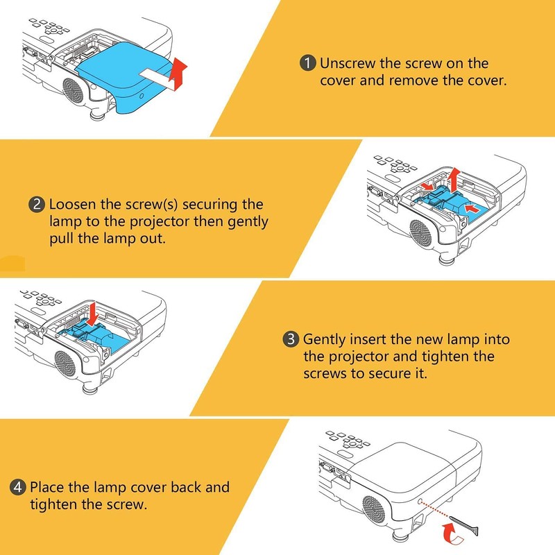 - Long-lasting and long-lasting lamp life with unique performance. Ideal for different types of projection lighting. Provides bright and clear images for home theater, business meetings, schools, churches, weddings, etc.