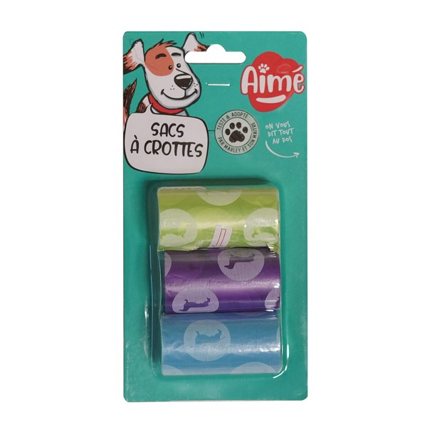 Aime 3 x Rolls of 15 Bags for Dogs - Convenient and Durable