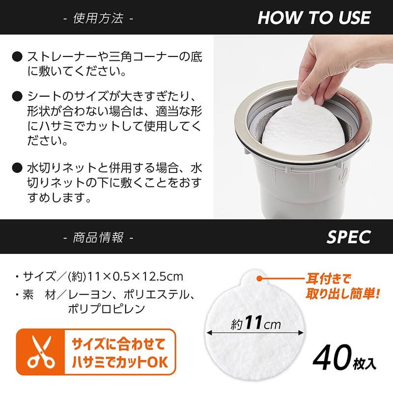 - How to Use: 1. Place it on the bottom of the strainer or triangular corner. 2. If the sheet is too large or the shape does not fit, please cut it with scissors to the appropriate shape. 3. When using with a draining net, we recommend placing it under the draining net