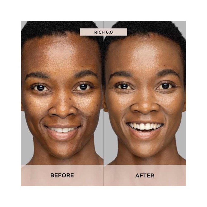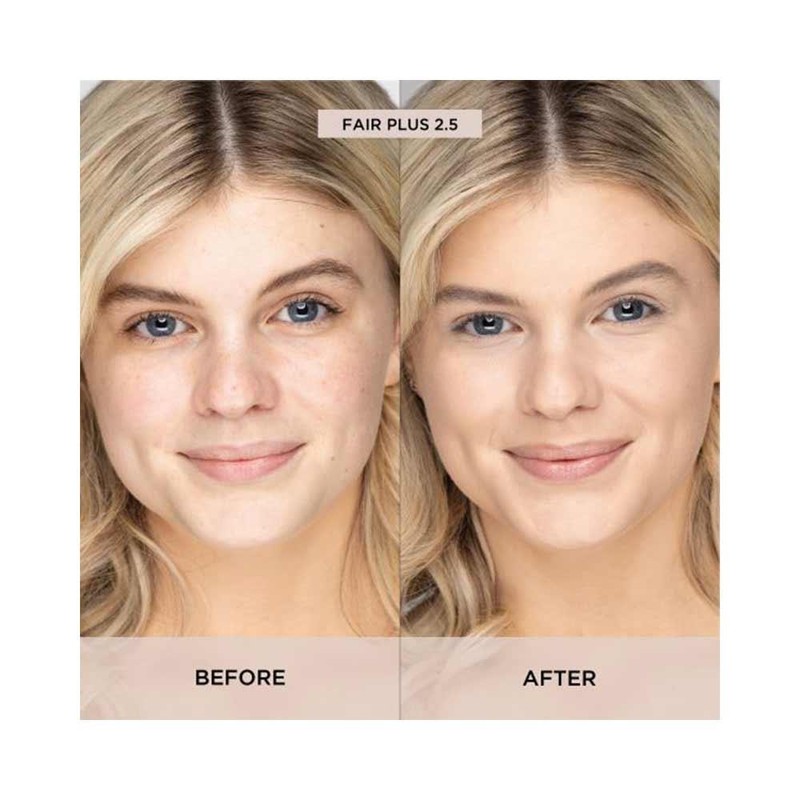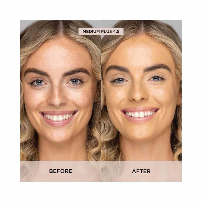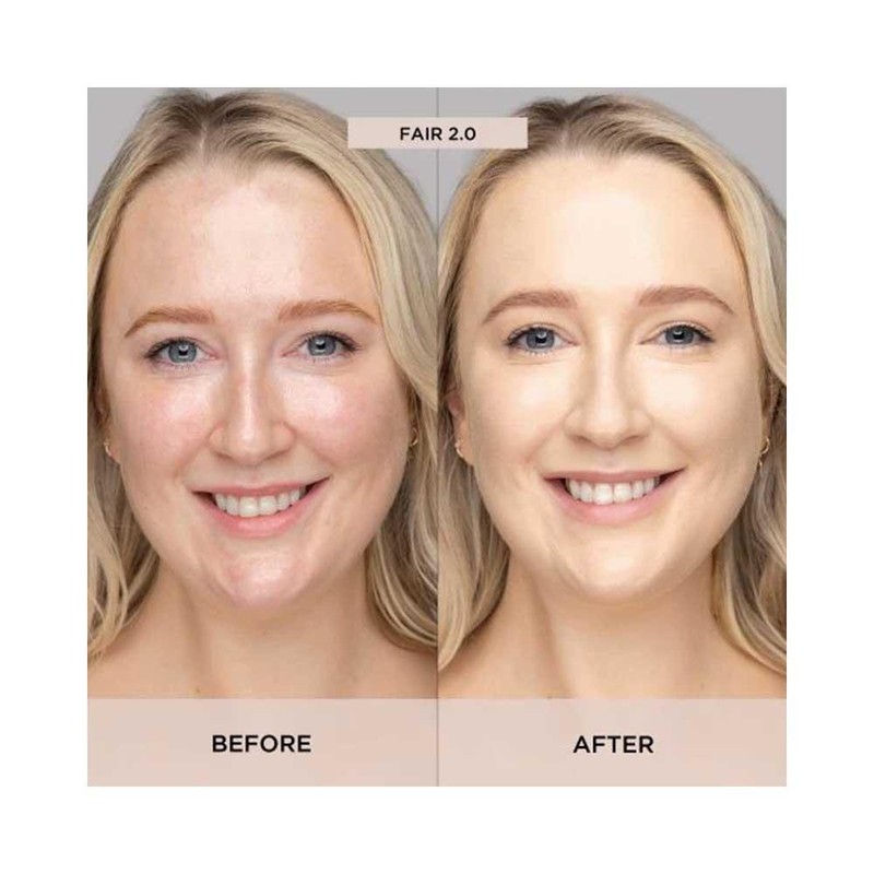 Apply 1-2 pumps evenly across the face using your favourite founatiin stippling brush