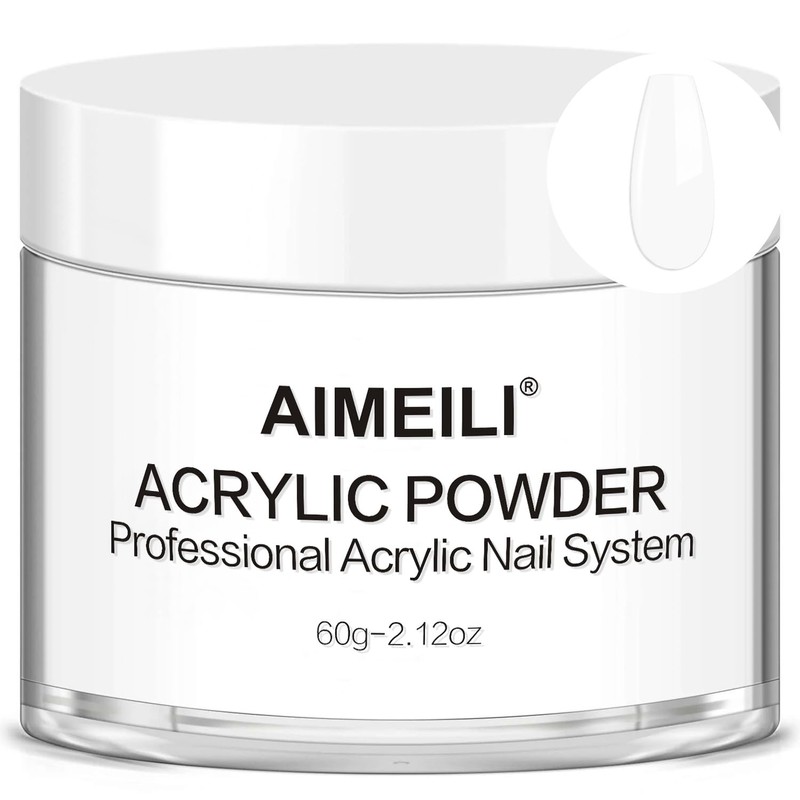 AIMEILI Acrylic Nail Powder 60g White Acrylic Powder for Acrylic Nail Art 3D Nail Carving French Nail Extension