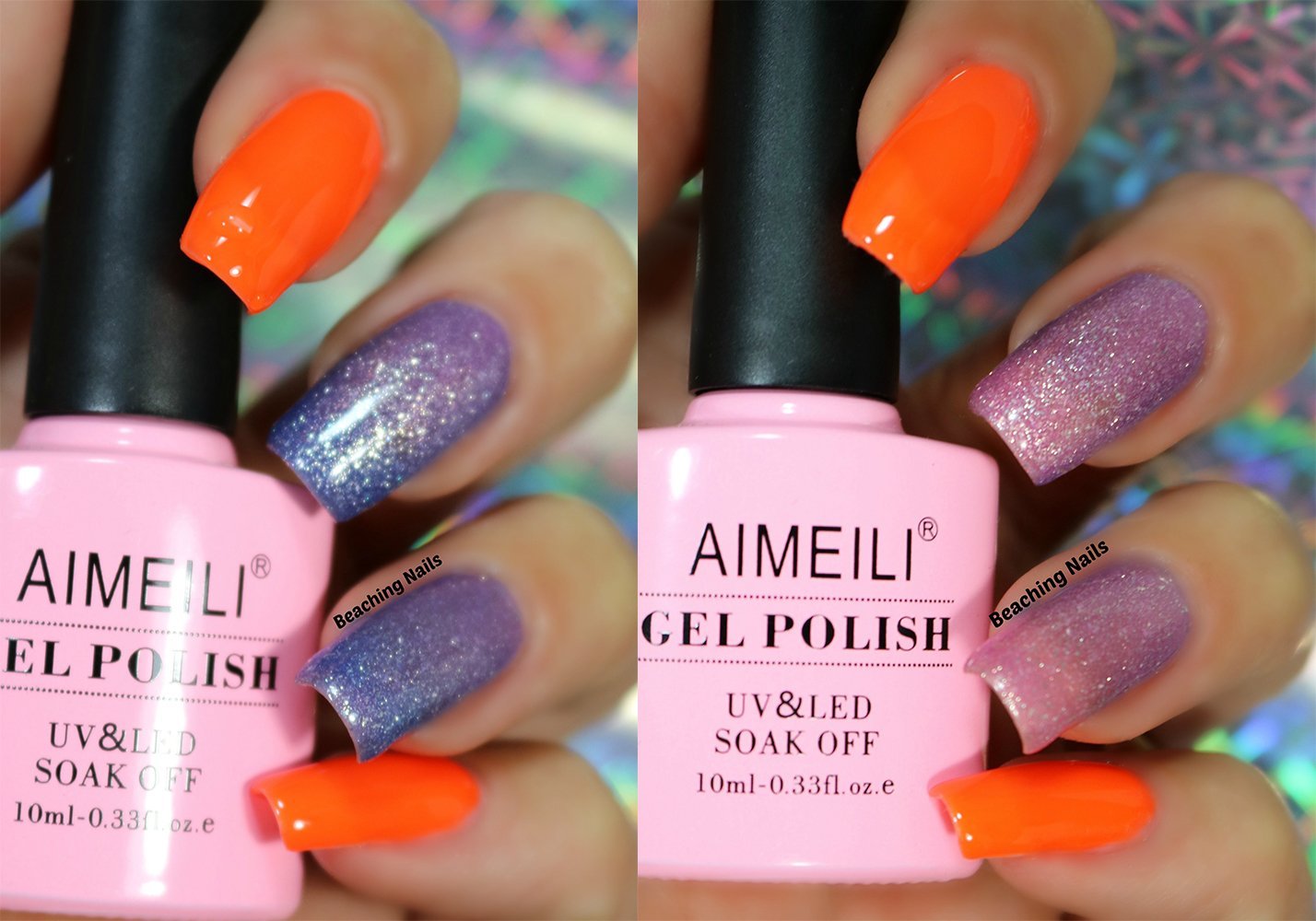 AIMEILI Soak Off UV LED Semi-Permanent Gel Polish that Changes Color with Temperature - New Glitter Purple To Pink (TC15) 10ml