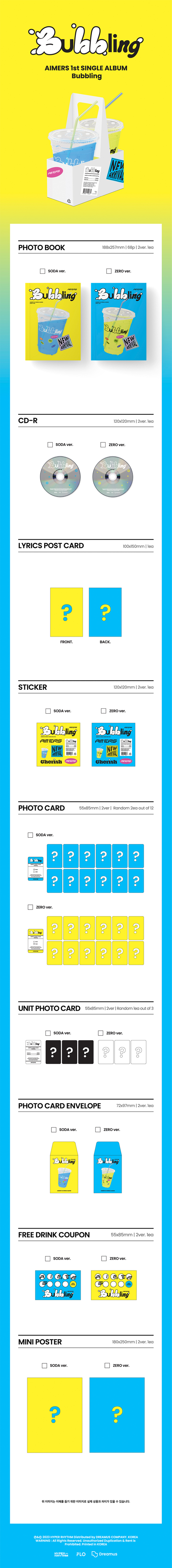 - Product/Model Name: AIMERS - 1ST SINGLE [BUBBLING] (ZERO VER.)
