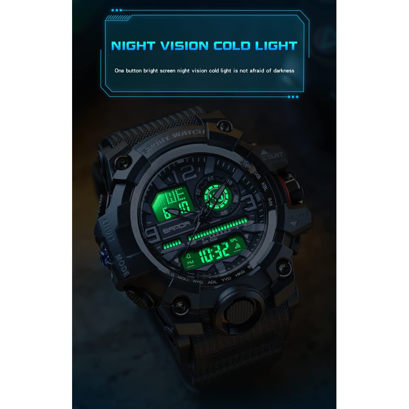 • Mens Military Watch: Cool large sporty dial designed,Sporty dial with digital and analog two time zones. Adopt big face design (2.1"/ 54mm), let you read time easily. with military outlooking, catch people's eyes in crowd, certainly a nice watch for men.
