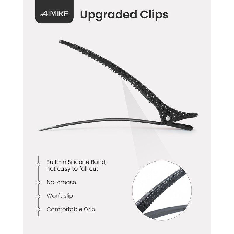 - No Crease Built-in Silicone Band: AIMIKE upgraded 2nd generation hair clips equipped with a built-in silicone band that offer a truly no-trace, gentle hold that won’t slip or fall off. The silicone band ensures a secure grip on your hair without leaving marks or causing damage, providing a comfortable and reliable styling experience every time.