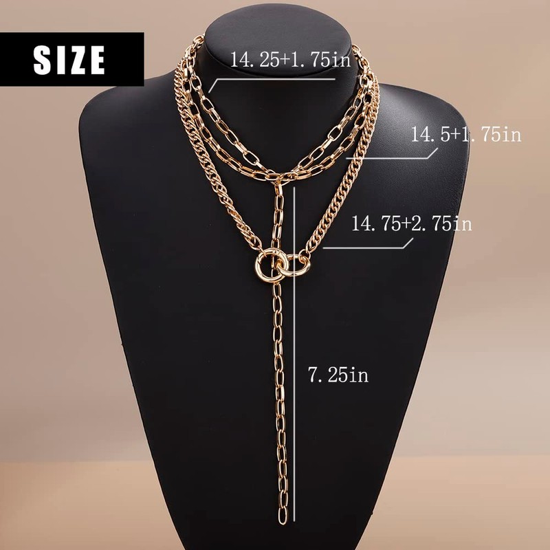 Aimimier Punk 3-layered Gold Link Chain Necklace Paperclip Chain Lariat Y Pendant Interlocking Double Circles Necklace for Women