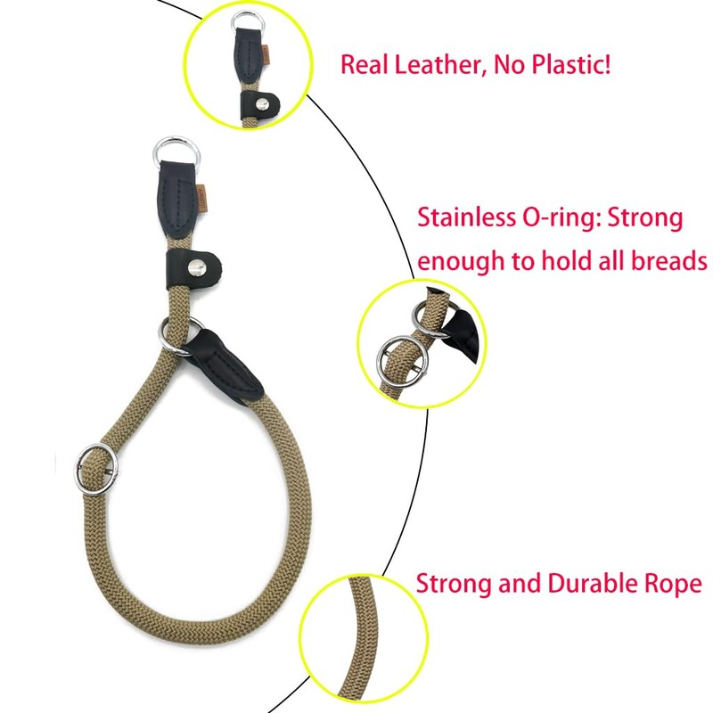 Aiminto Braided Round Martingale Dog Collar, Training Collar with Slidable Stop Ring and Adjustable Stopper - Ideal for Extra Large Dogs (XL(1/2") - 24" Long, Khaki)