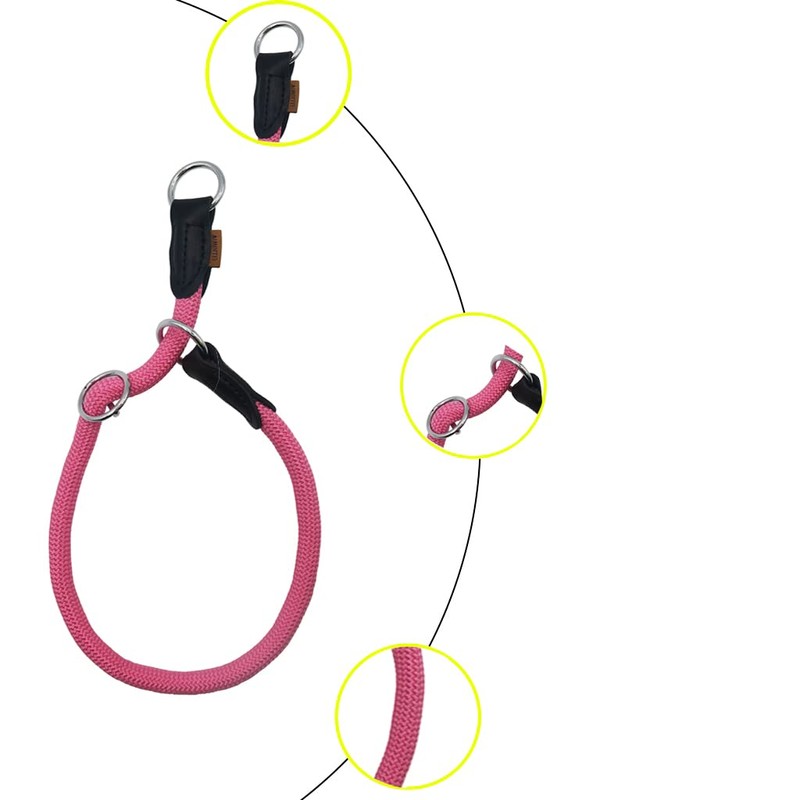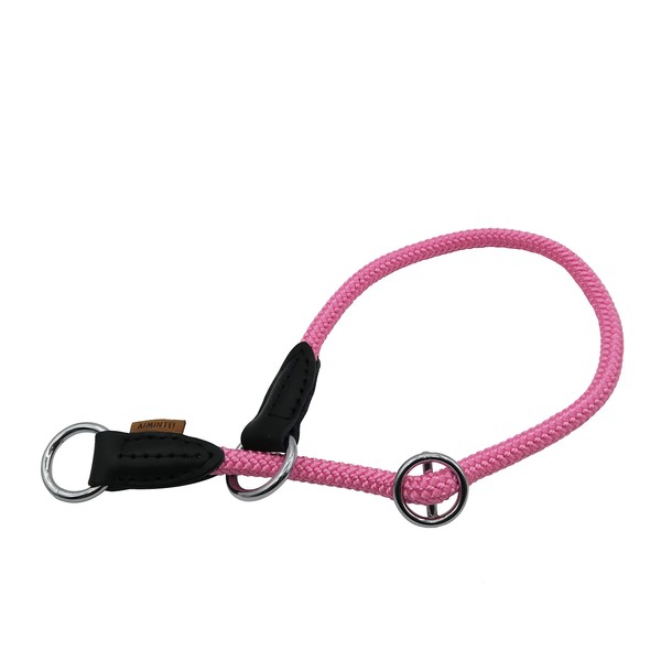 Aiminto Nylon Rope Pro Training Dog Collar, No Pull Round Martingale Collar, Slip Collar with Slidable Stop Ring - Ideal for Medium Dogs (M-(1/3") - 18" Long, Pink)