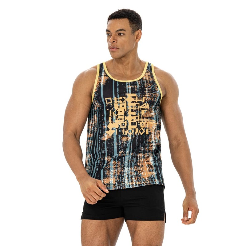 -Featuring a trendy print and quick-dry technology, our fitness vest is a must-have for any active man's wardrobe. Whether you're hitting the gym or running errands around town, our base layer sport tank top is the perfect choice for staying comfortable and stylish.