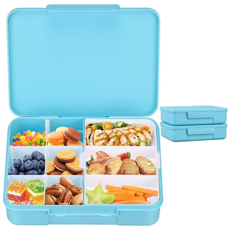 - 🍔Customizable Compartments -- Our kids bento box features a removable compartment and detachable dividers, offering you the flexibility to create anywhere from 2 to 10 compartments. The spacious main compartment is perfect for a sandwich or a larger dish, while the smaller compartments are ideal for fruits, vegetables, snacks, and treats.