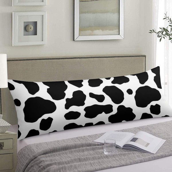 AIMSTONG 20"x54" Black and White Cow Print Body Pillow Cover with Zipper, Polyester, Decorative Soft Large Pillow Case Protector for Bedding, Couch, Sofa, Home Gift
