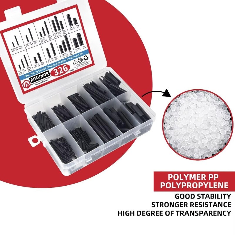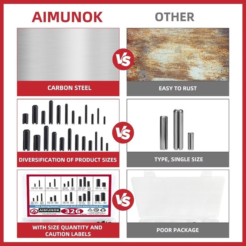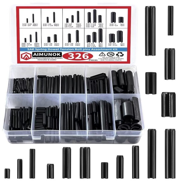 【AIMUNOK 326PCS Roll Pin Set - 26 Sizes Spring Dowel Tension Roll Pins - 1/8 1/4 3/8 1/16 5/64 3/32 5/16 5/32 7/32 Split Expansion Pin Assortment Kit for Home Improvement Automotive Repair】