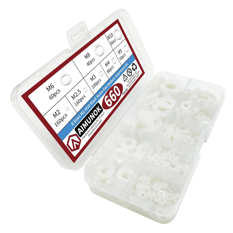 • 【Package Included】-✨ AIMUNOK 660 pieces M2 M2.5 M3 M4 M5 M6 M8 M10 white nylon washers are packaged in a clear plastic box, which is very convenient for you to carry and use. If you have any questions about AIMUNOK white nylon washers, please free to contact with us and we will reply to you as soon as possible.