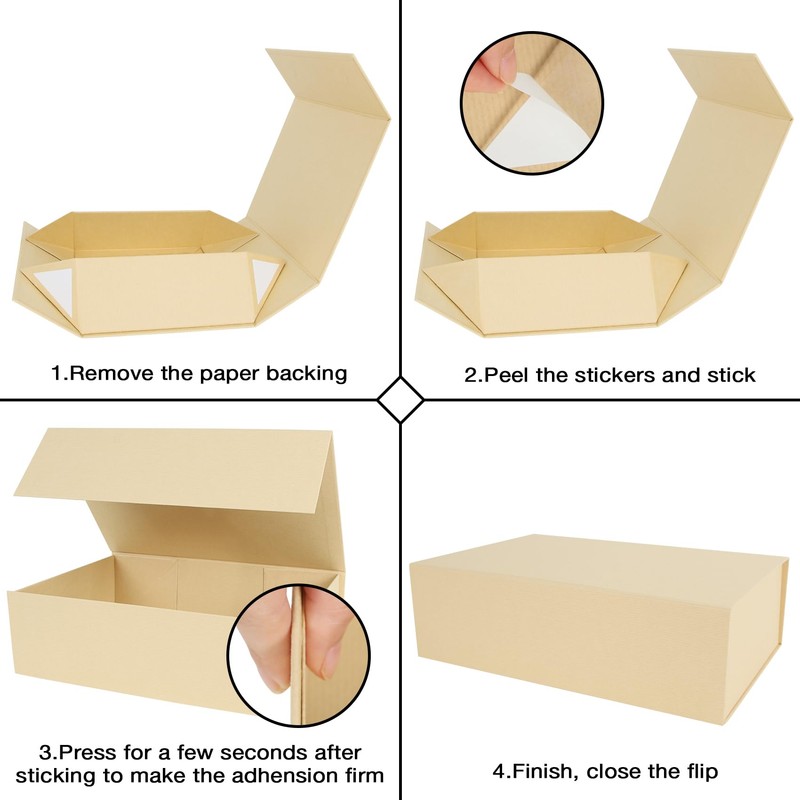 - Valuable 5 Pack Brown Gift Boxes - boxes are shipped flat; large brown collapsible gift box with magnetic closure, assembled box outside dimensions 13.8 x 9 x 4.3 inch, inside dimension 12.5 x 8.66 x 4.13 inch.