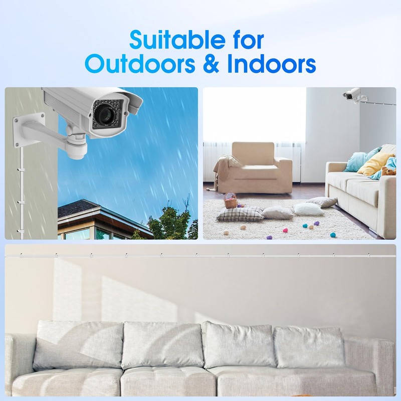 • Easy to Use:The cable is easy to use,plug-and-play and Supply DC Power for Security Cameras.Connectors to extend cable length and Cable Clips make wiring more convenient.Increased flexibility in the process of using.