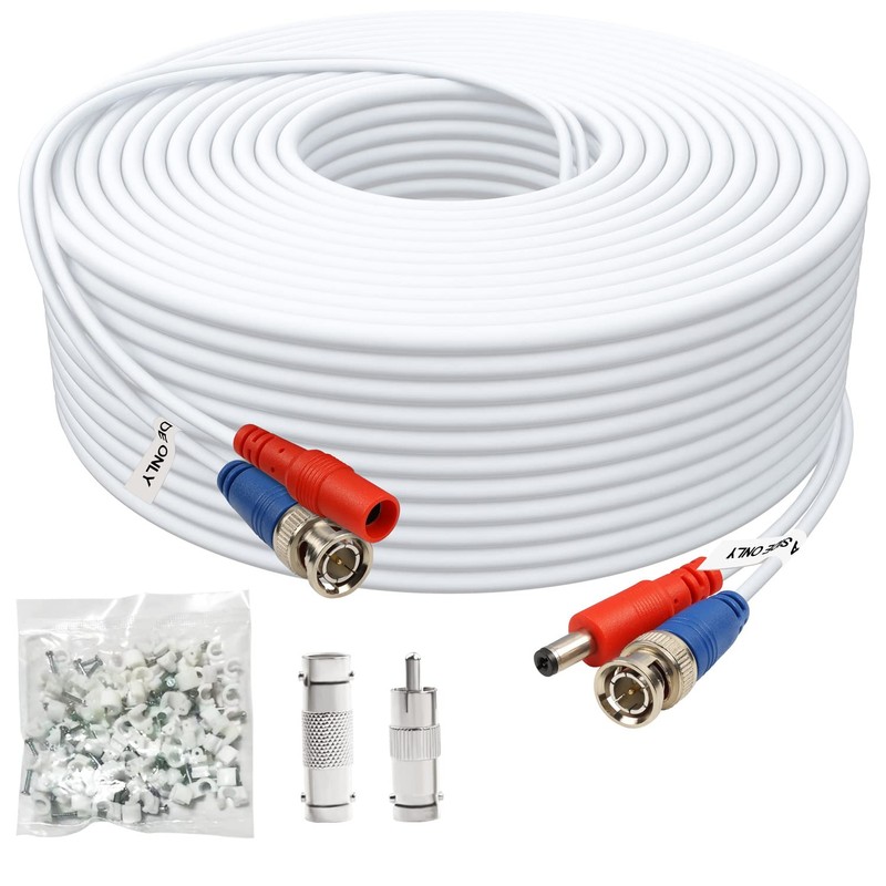Package Included 1 Pieces 200 Feet White BNC Cable,2 Pieces Connectors,100 Pieces Cable Clips.