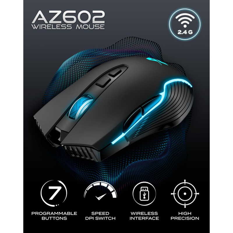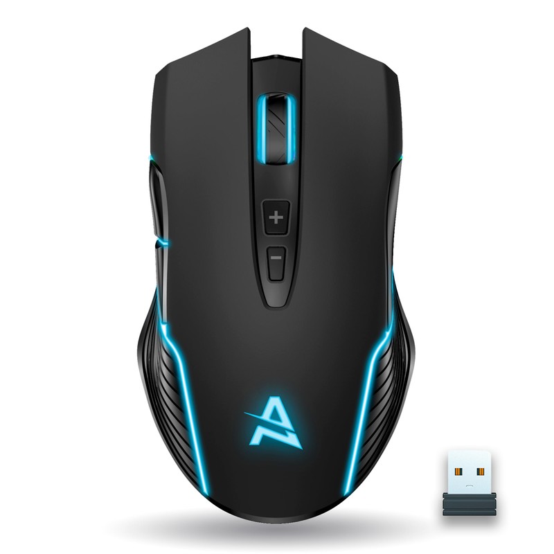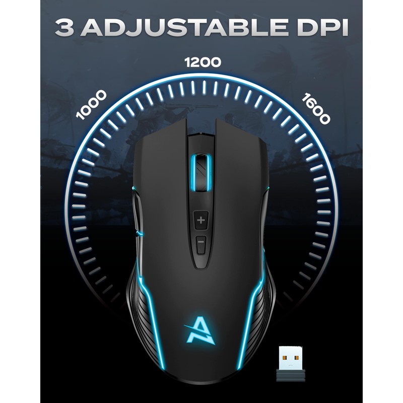 Aimzone Gaming Mouse with LED, USB Wireless Mouse for Gaming with Adjustable DPI, LED Lightning, Rechargeable Wireless Mouse, Full Compatible with Mac & Windows (Black)