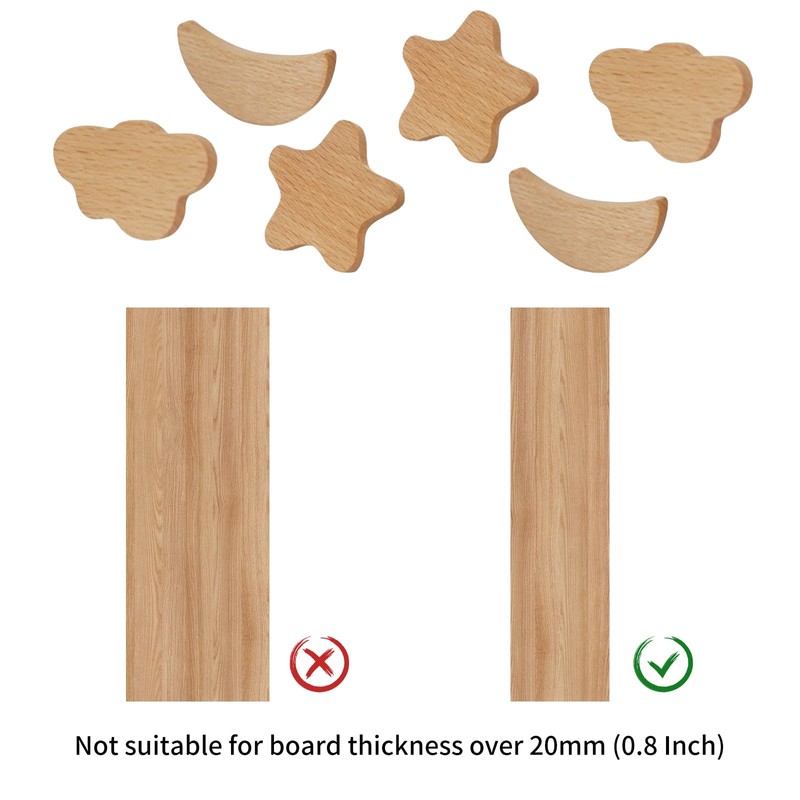 - Design: you will receive 6 wooden furniture handles with different shapes. Creative and cute shapes such as stars, clouds and crescents that are ideal for children's rooms or decorative spaces.
