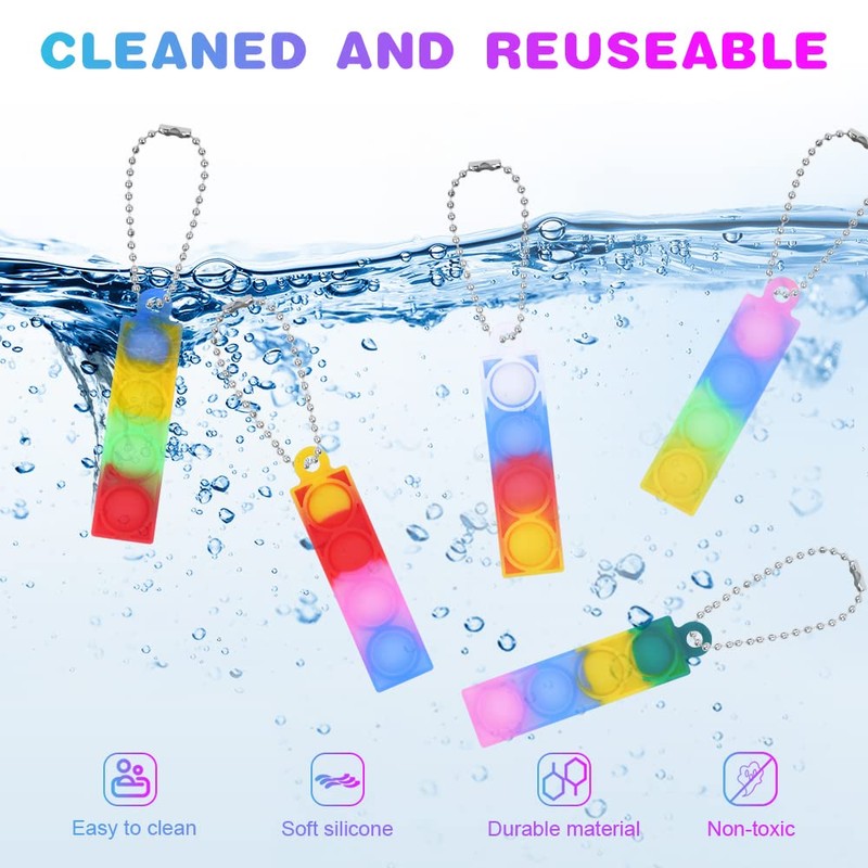• đŸ¶ă€SAFE AND RELIABLE】Ainiv Mini Pop Push It Fidget Toy Keyring is made of excellent silicone material. The material is safe, non-toxic and odorless, resistant to falling, wear and tear. The surface is smooth and the buttons are soft, it will not hurt your baby's skin, you can play with confidence.