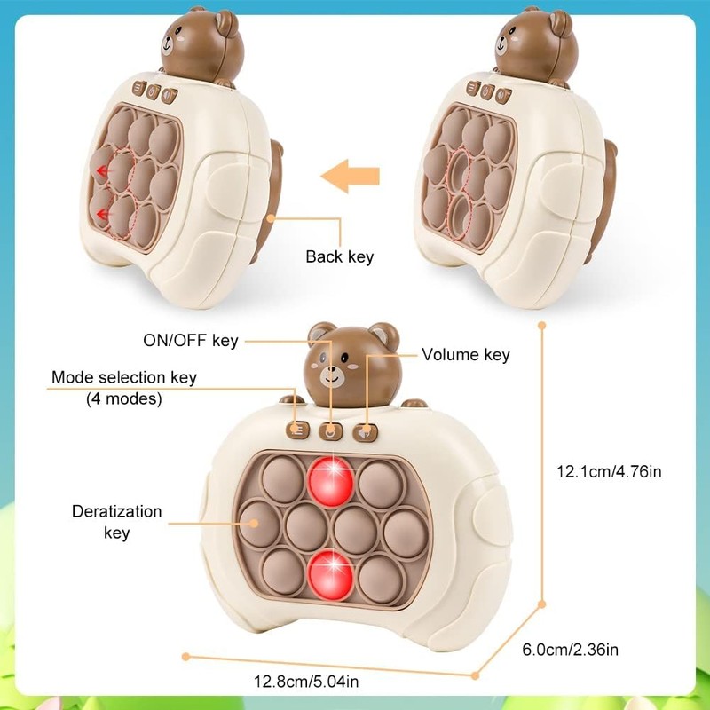 • Brain game: this is a classic pop bubble game. Our new hand toy is easier and more fun than most toys. Children are engaged in positive thinking, hand-eye coordination and brain training with game challenges full of lights and sounds that promote sensory development.
