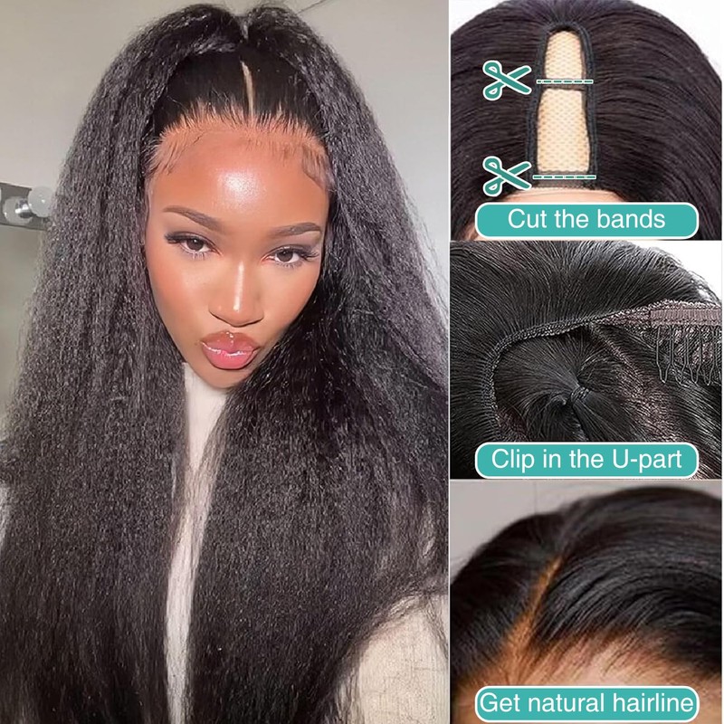 - 【Easy to Wear】 The kinky straight U part wig human hair for women, no glue, no sew in, just fix the claw comb on your hair, can be protects your scalp. U part wig is easy to install and take off, Convenient and Fast, it is an ideal choice for beginners and those who prefer a hassle-free styling experience.