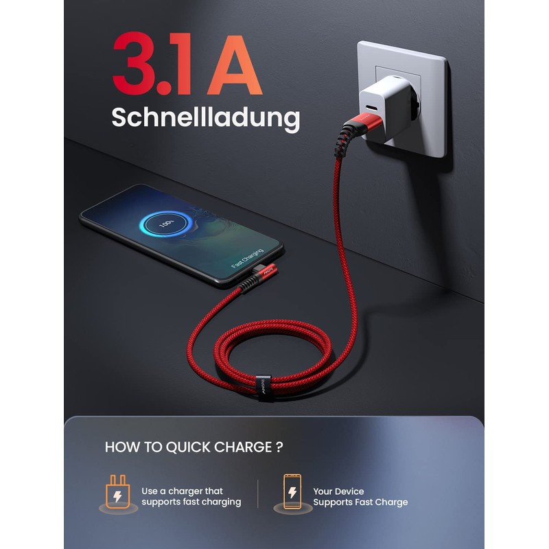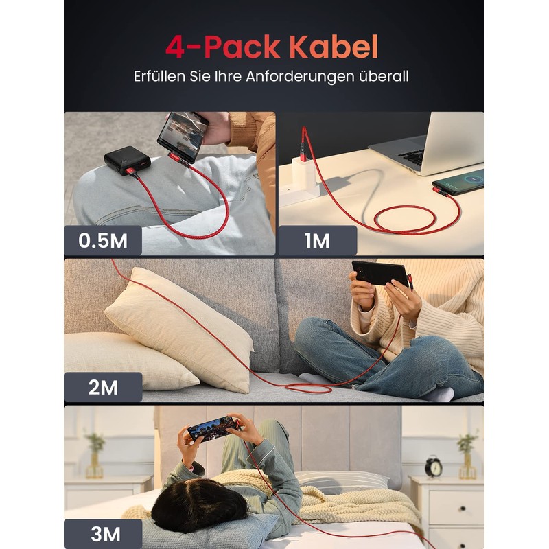 AINOPE AINOPE Pack 0,5 m 1 m 2 m 3 m USB C Kabel 3,1 A Schnellladung, AINOPE ...