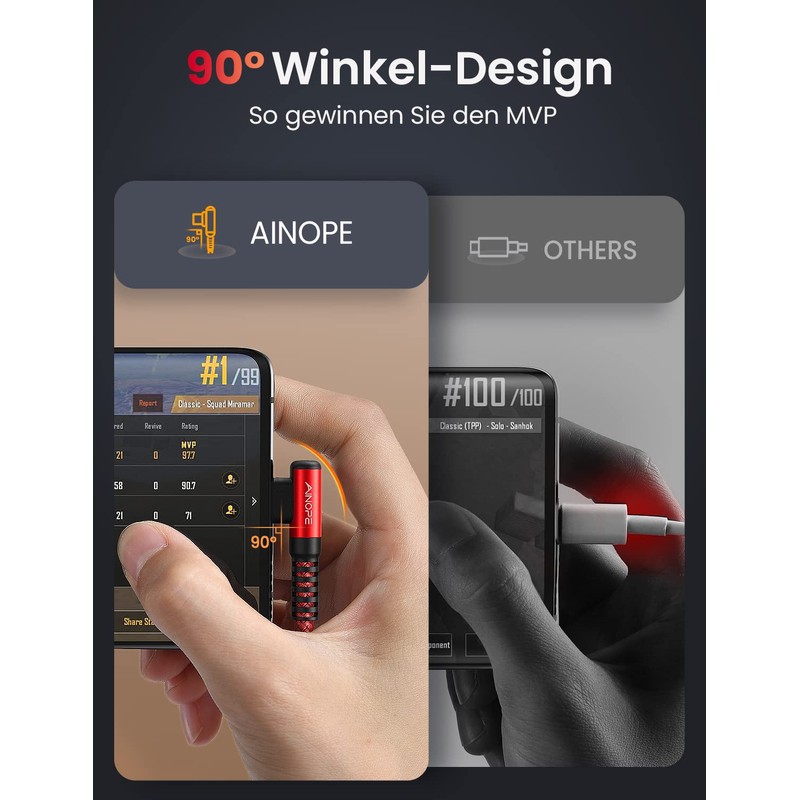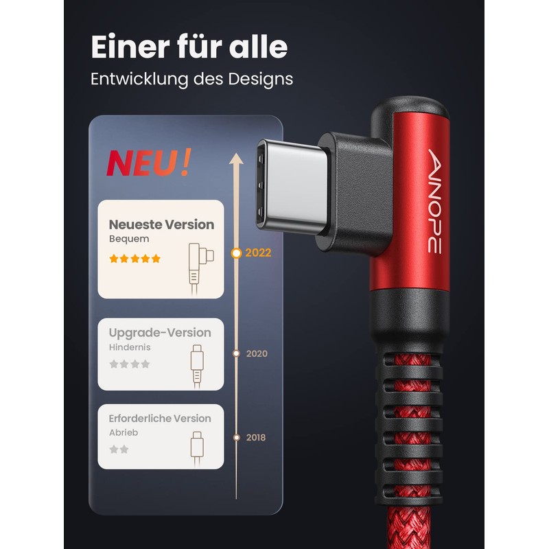 AINOPE AINOPE Pack 0,5 m 1 m 2 m 3 m USB C Kabel 3,1 A Schnellladung, AINOPE Ladekabel USB C Winkel