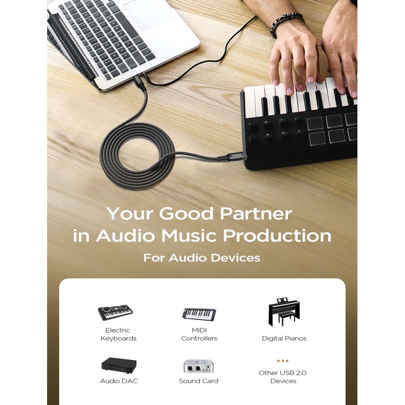 AINOPE Printer USB Cable for Casio Digital Piano MIDI Controller 6.6ft
