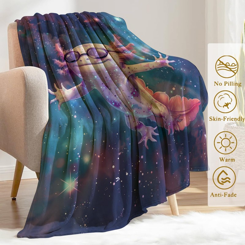 ainori Axolotl Space Flannel Blanket - Sunglasses-Wearing Axolotls Floating in a Cosmic Galaxy Throw - Lightweight Soft Cozy Gifts Blankets for Kids Adult,Modern Decor,Home Room Accent 50x60in
