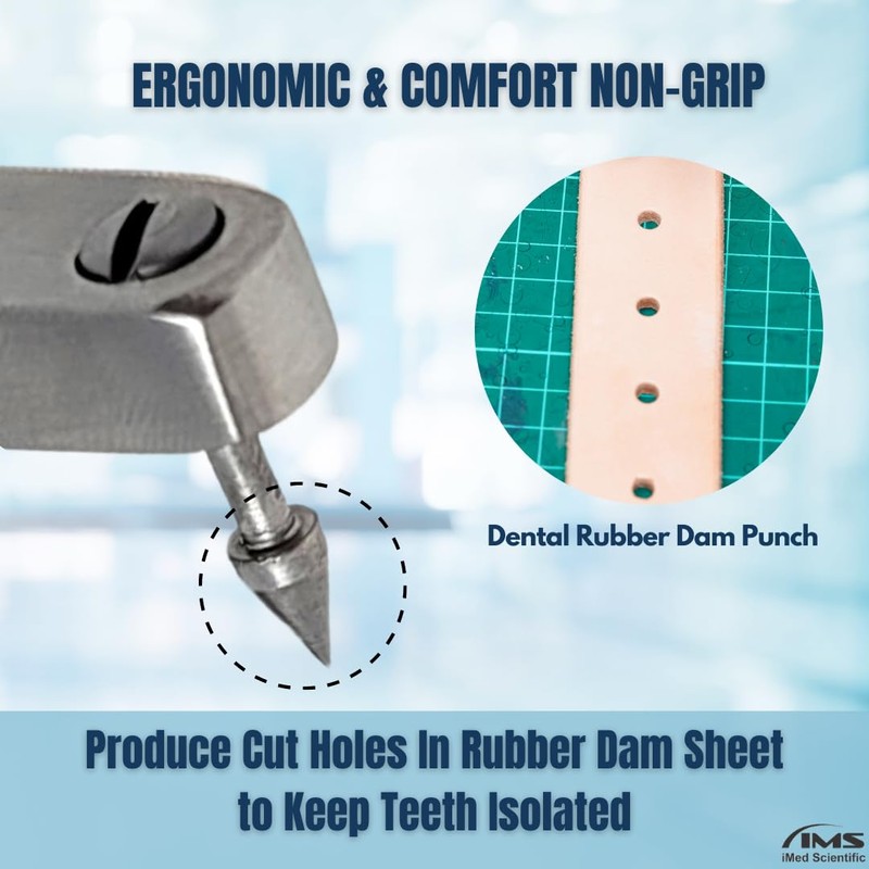 CREATES 5 SIZES ROUND HOLES: The 5-hole ainsworth rubber dam punch has the 5 most common sizes, which can accurately punch round holes of 0.8, 1, 1.2, 1.5 and 2mm in diameter. Simply rotate the die wheel to select desired size. The punching tips are well aligned to the corresponding holes. The handle grip is designed for stability and leverage.