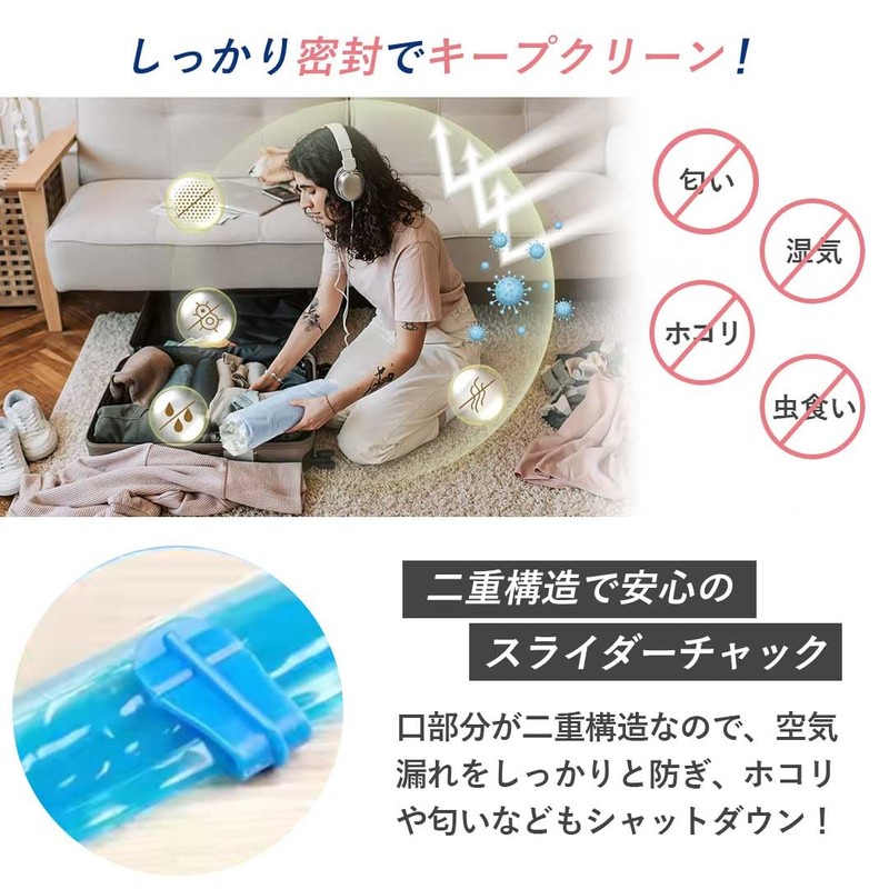 A fun trip with a change of clothes and other luggage. We created a compression bag that makes bulky clothing easy and compact! Easy to compress with a handy travel bag. In addition, the material is extremely durable and can be used for a long time. Travel without worrying about luggage.