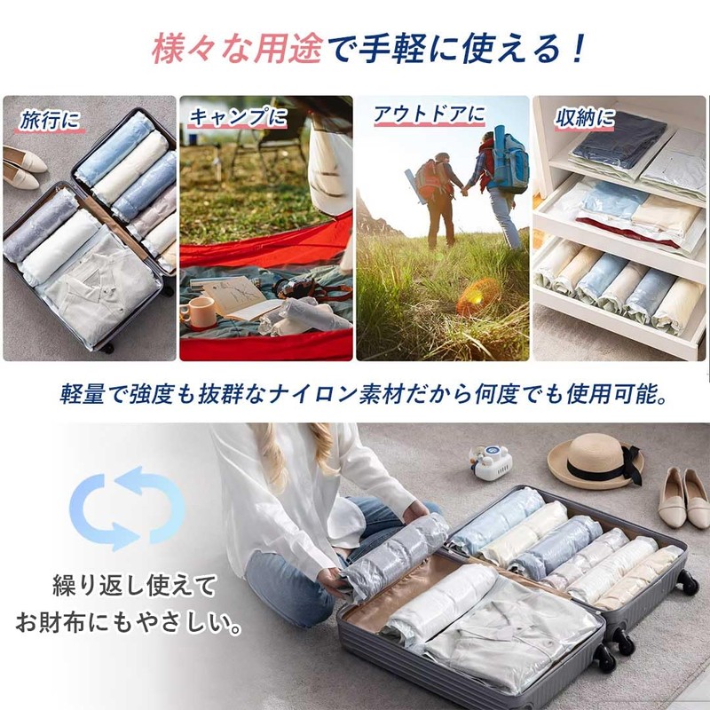- A fun trip with a change of clothes and other luggage. We created a compression bag that makes bulky clothing easy and compact! Easy to compress and easy travel bag. In addition, the material is extremely durable and can be used for a long time. Travel without worrying about luggage