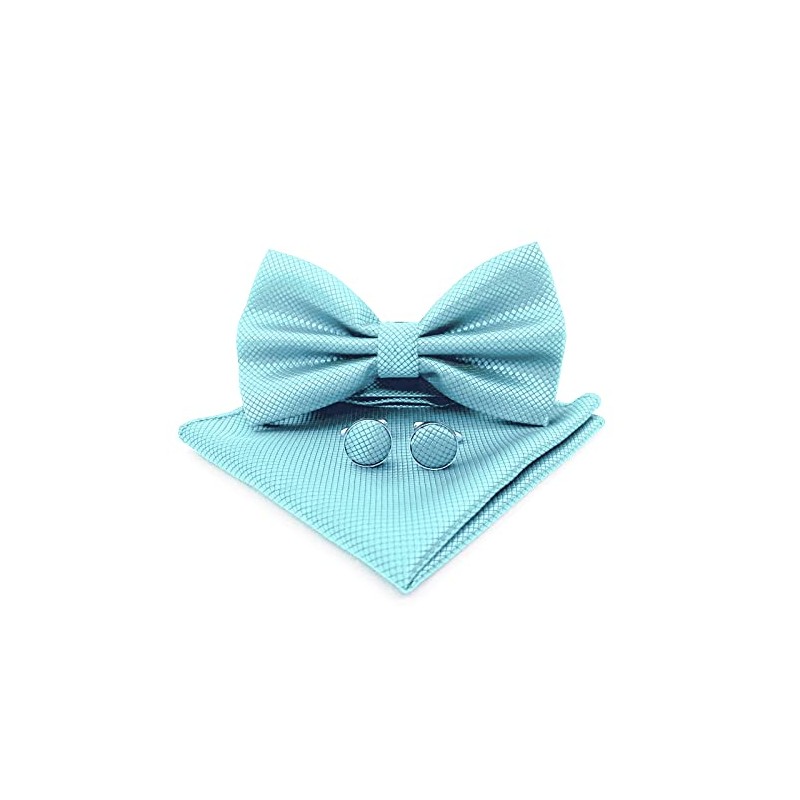 AIOBLEEY Men's Bow Tie with Handkerchiefs Cufflinks: Bow Tie Set for Wedding, Tuxedo Suit, Formal Event - Gift Box, turquoise