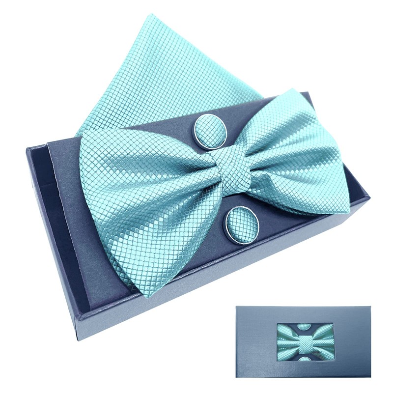 - You will receive: 1 x bow tie, 1 x pocket square, 1 pair of cufflinks.