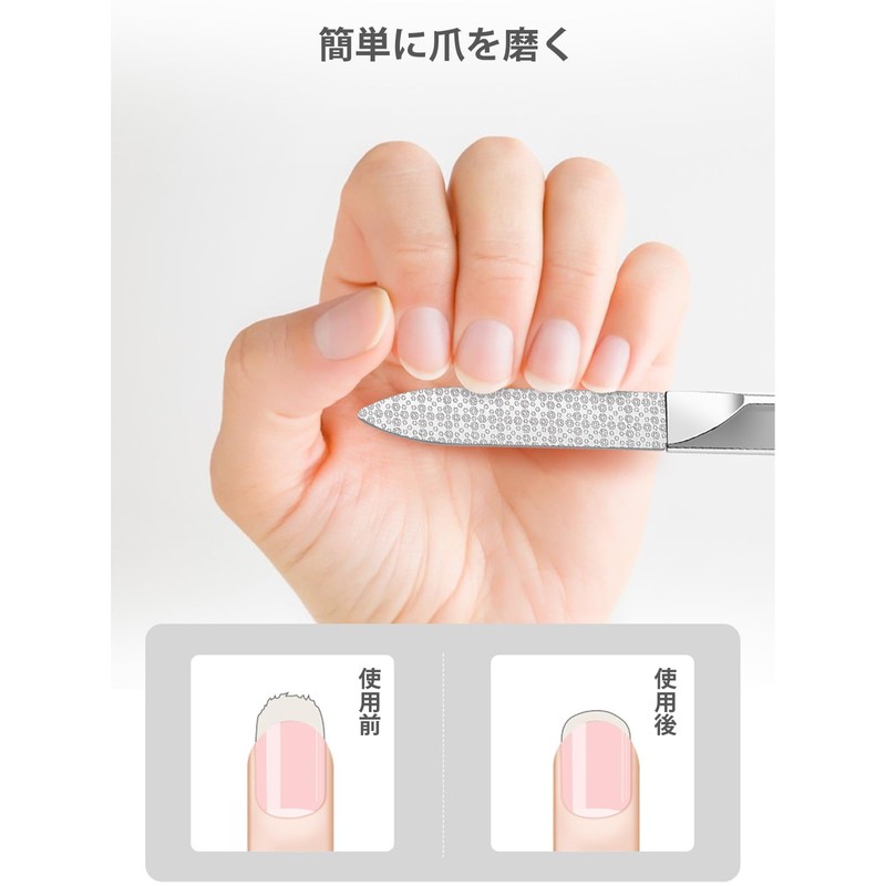 - 【高品質の爪やすり】厳選された高品質のステンレススチールを使用し、厚みのあるステンレススチールで作られており、丈夫で耐摩耗性があり、変形しにくいです。同時に優れた防錆性能も備えており、長期間使用しても錆びることがなく、耐久性に優れています。