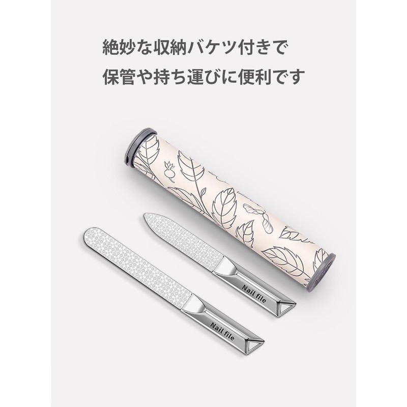 - 【パッケージ内容】ラウンド型 爪やすり×1、ストレート型 爪やすり×1、収納ボックス×1。