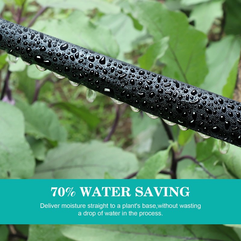 - Save Water Efficiently: Featuring an advanced double-layer design, this soaker hose minimizes water waste by delivering moisture directly to plant roots, saving up to 80% water compared to traditional irrigation methods