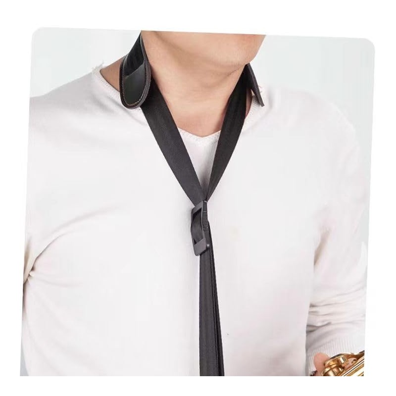 AIOLLNS Saxophone Neck Strap Black Soft Leather Padded for Alto Tenor Baritone Soprano