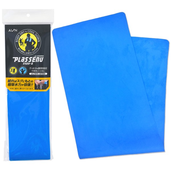 Aion Water Absorbing Towel, Plus Seine, Blue, Length 27.2 x Width 8.5 inches (69 x 21.5 cm), Squeeze to Restore Water Absorbency, Heat Stroke Prevention, Heat Prevention, Pack of 1