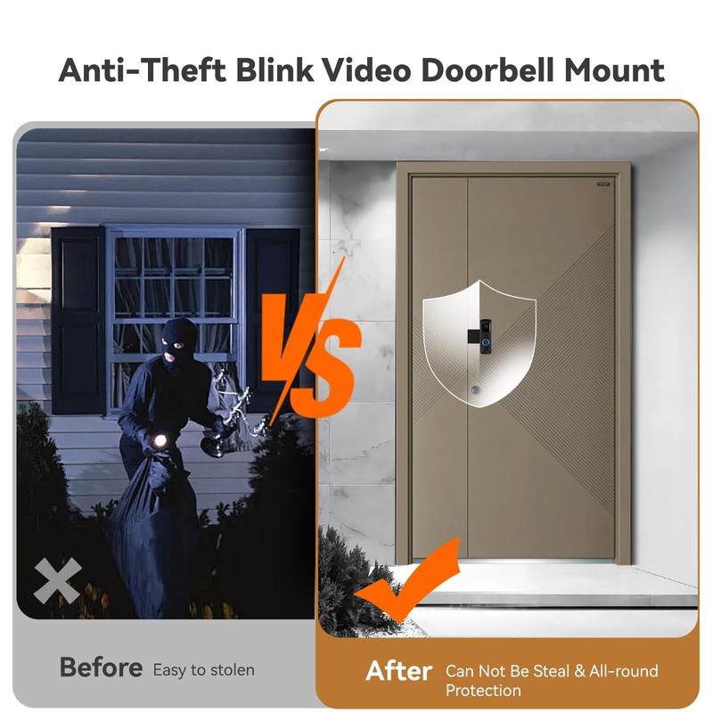 - 【Rain Cover Design】Upgraded Anti-Theft Blink Doorbell Mount is equipped with an extended rain cover to protect your Blink Video Doorbell from rain when installed outdoors